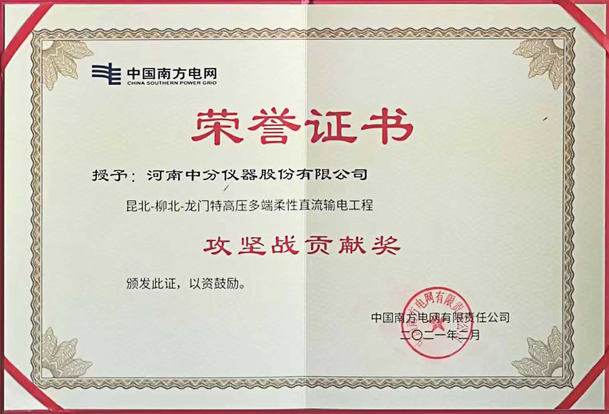 3月15日,南方電網(wǎng)超高壓公司為我公司頒發(fā)了“昆柳龍直流工程攻堅(jiān)戰(zhàn)貢獻(xiàn)獎”牌匾和榮譽(yù)證書,以表彰我公司在烏東德水電站送電廣東廣西特高壓多端直流示范工程及昆柳龍直流工程龍門、柳北換流站工程變壓器油中溶解氣體在線監(jiān)測裝置項(xiàng)目中所做出的卓越貢獻(xiàn)。烏東德水電站是中國第四、世界第七大水電站,全面投產(chǎn)發(fā)電后年均發(fā)電量將達(dá)到389.1億千瓦時(shí)。昆柳龍直流工程將該水電站的清潔水電源源不斷送往粵港澳大灣區(qū),為大灣區(qū)經(jīng)濟(jì)社會發(fā)展提供了有力的能源保障,為實(shí)現(xiàn)碳達(dá)峰碳中和奠定了堅(jiān)實(shí)基礎(chǔ)。